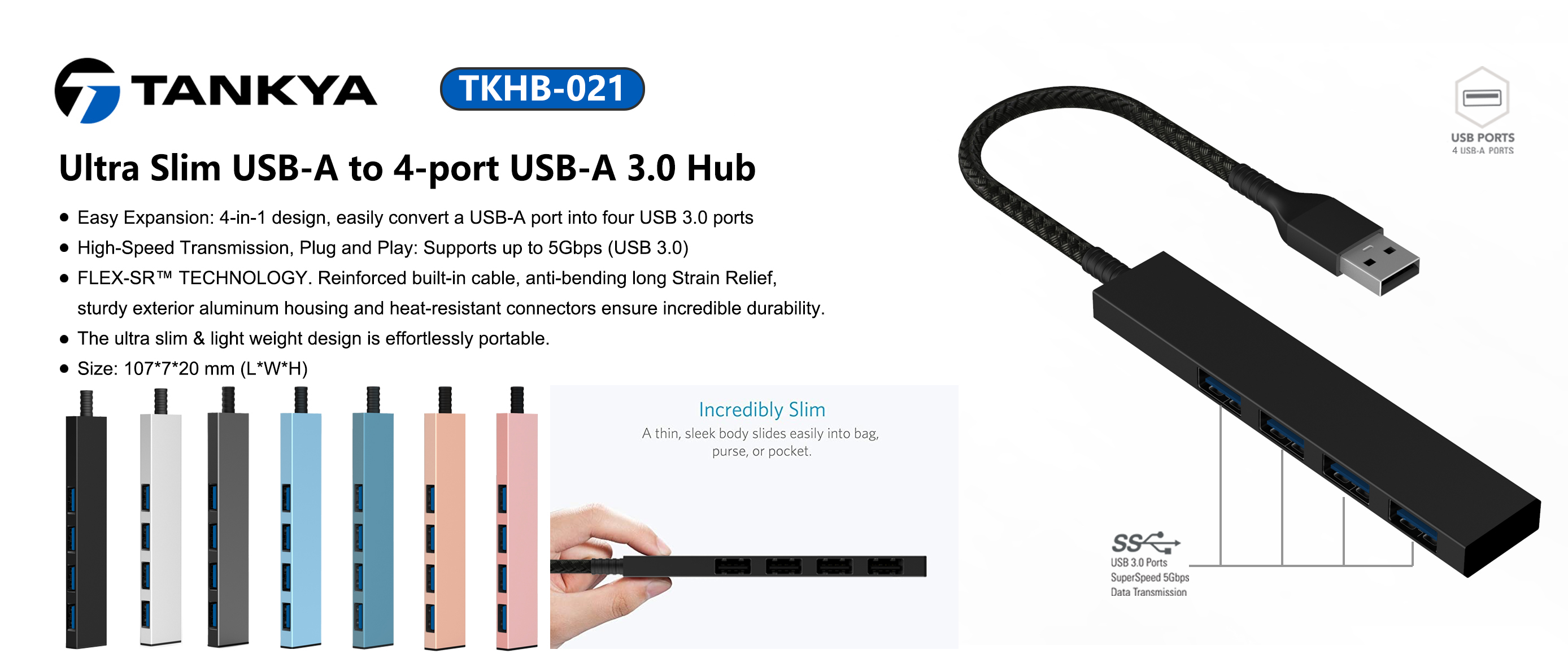 - Easy Expansion: 4-in-1 design, easily convert a USB-A port into four USB 3.0 ports